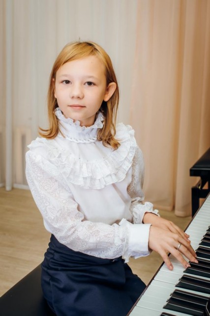 увлеченная и трудолюбивая, проявляет огромный интерес к учебе, активно участвует в творческой жизни школы и класса. Принимает участие в концертах школы для детских садов, «Филармонии школьника», центра «Скворушка», для родителей ДШИ в школьных концертах, в тематических мероприятиях, в проекте «Семейное музицирование»
